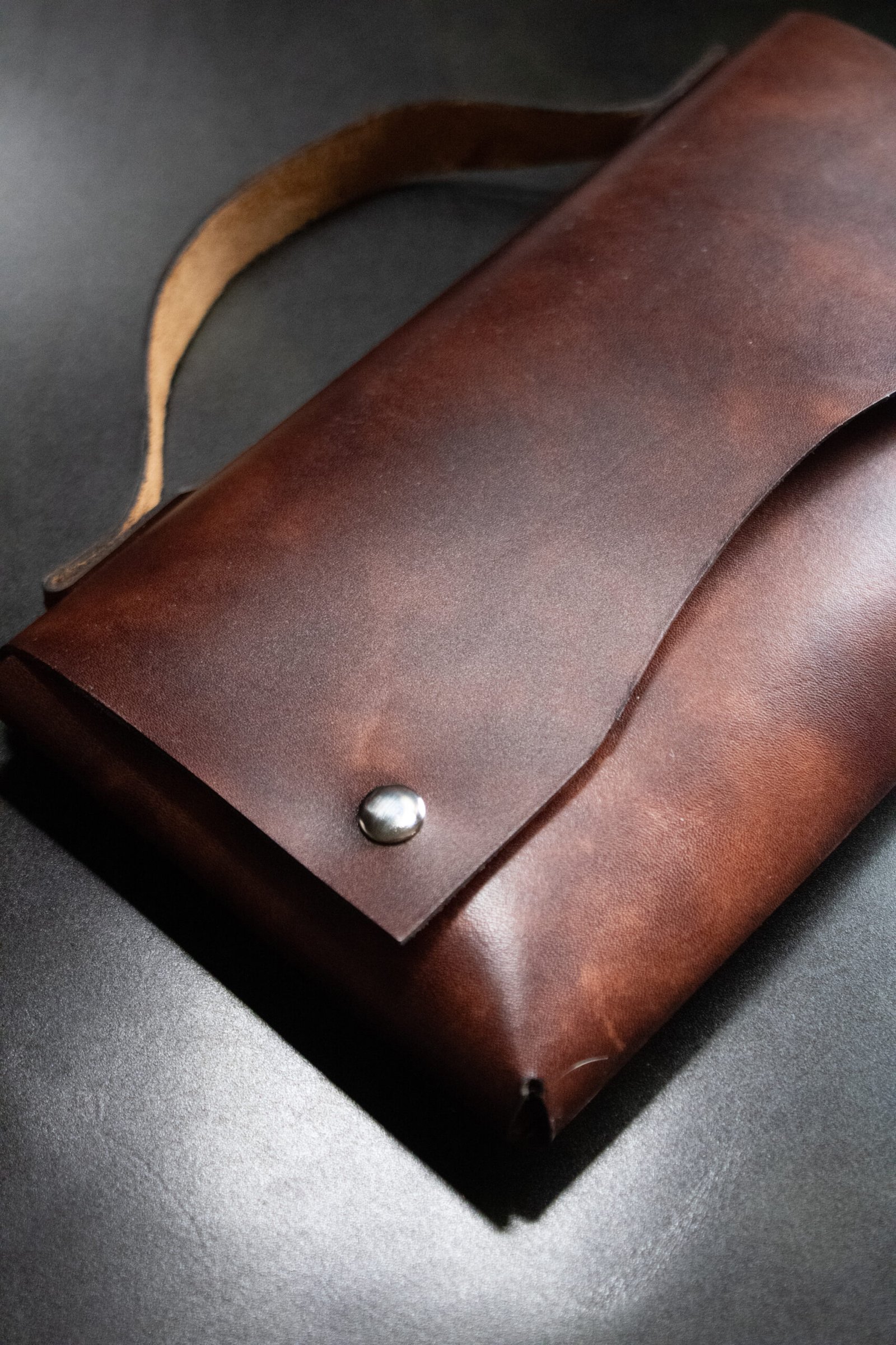 Une sacoche à main minimaliste et structurée, pensée pour l’essentiel. Sans doublure, avec peu de coutures et une construction par rivets, elle affirme un design brut, moderne et universel.